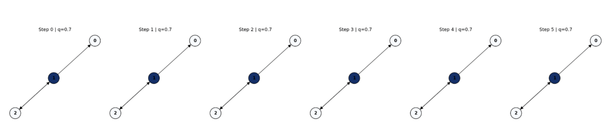 The graph contains a directed cycle (0 → 1 → 2 → 0), ensuring nontrivial