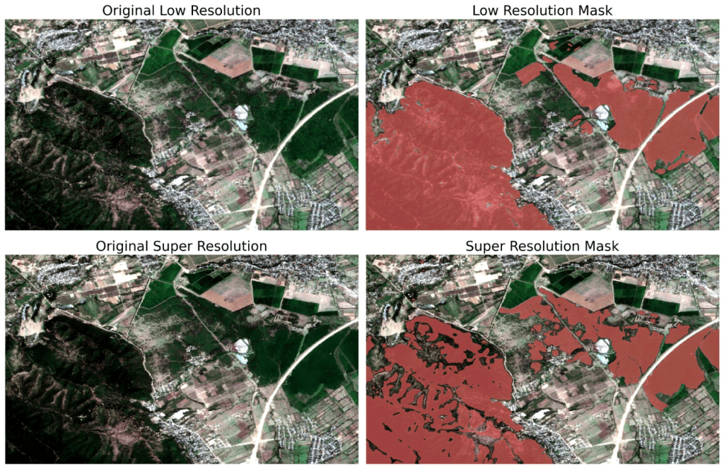 Figure 6 | Comparison between the mask quality of Super Resolution and Low Resolution satellite images