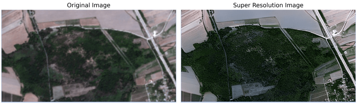 The aim of Super-resolution techniques is to create a high-resolution (HR) image from low-resolution (LR) images. Better spatial resolution results in better distinction of the boundaries of deforestation patches, better ability to distinguish between different types of forest disturbances, and a reduction in the number of false positives and false negatives. However, these benefits must be weighed against computational trade-offs. Super-resolution processing adds computational overhead, both in terms of processing time and resource requirements. Some SR techniques might introduce artefacts or slightly alter the spectral characteristics of the imagery6. In order to determine if the improvement in deforestation detection accuracy can justify the additional complexity and potential effects on spectral fidelity, a careful evaluation is required. This is especially true for applications that depend on accurate spectral information for in-depth analysis.