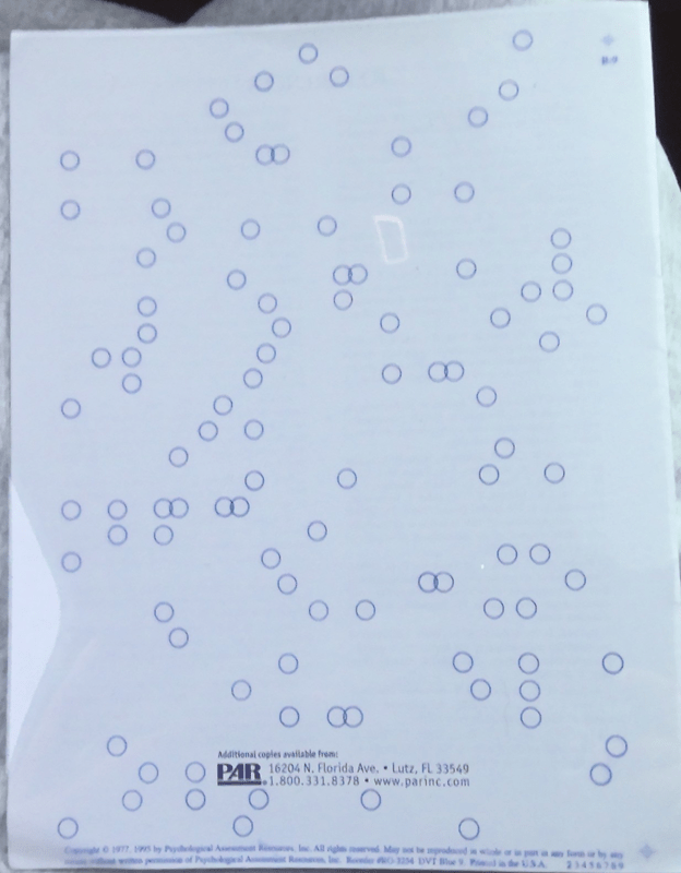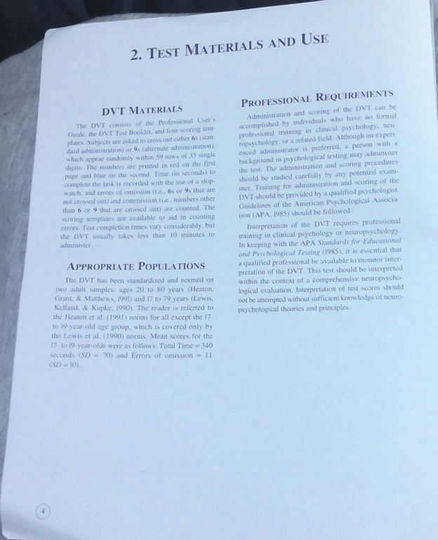 The DVT test was bought from PAR Inc. and included copies of the test, a user’s guide, and scoring keys- See Appendix E. The information in the literature review was derived from PAR Inc.’s user’s guide.