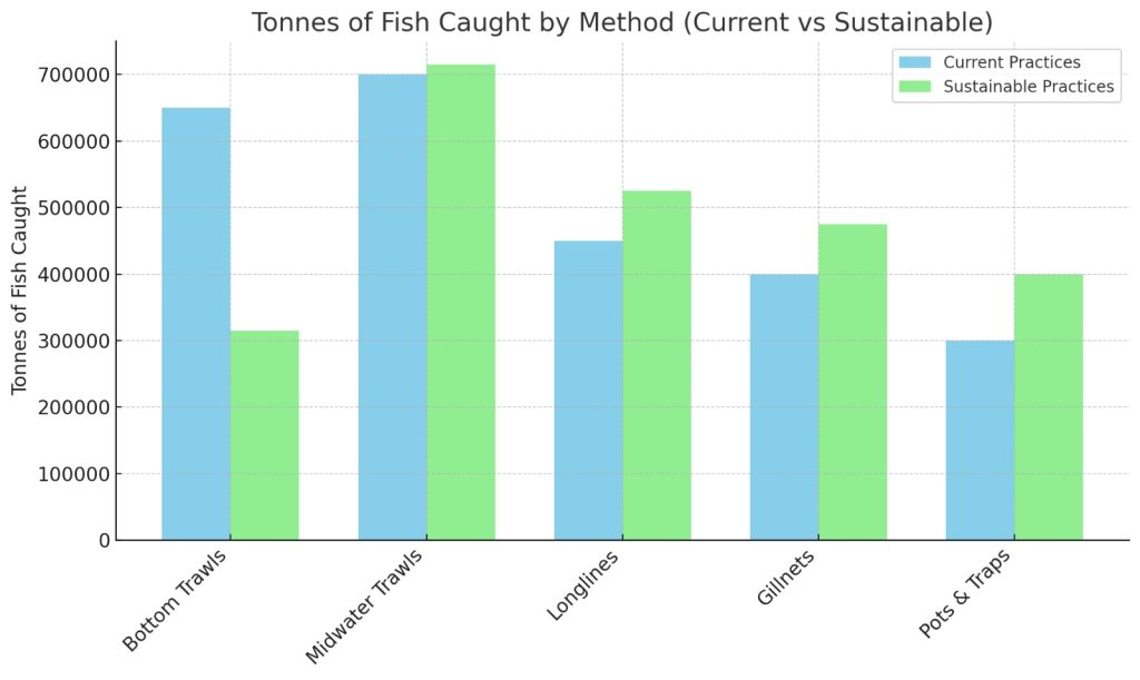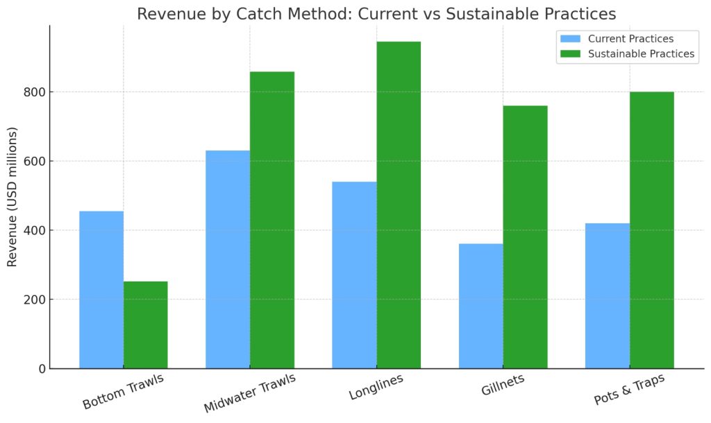 | Catch Method | Estimated Catch (Tonnes) | Share of Total Catch (%) | Revenue per Ton (USD) | Estimated Revenue (USD millions) | Change in Catch Volume (%) |