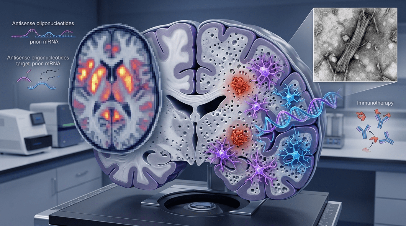 | Antisense Oligonucleotides (ASOs) | • Directly targets PRNP gene mRNA • Potential to slow disease onset | • Unknown long-term safety • Invasive delivery methods • Ethical concerns around early human trials |