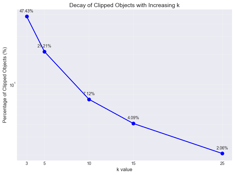 To determine the optimal k value for the robust normalization procedure, we conducted a sensitivity analysis by evaluating multiple k values, and the clipped point percentage result is shown in Figure 4. The choice of k represents a critical balance between removing spurious outliers and preserving genuine astrophysical signals in transient light curves.
