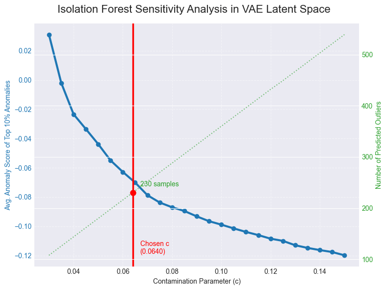 %) outliers. Score-distribution inspection and contamination sensitivity indicate a stable region before overly permissive settings begin to add borderline points10.